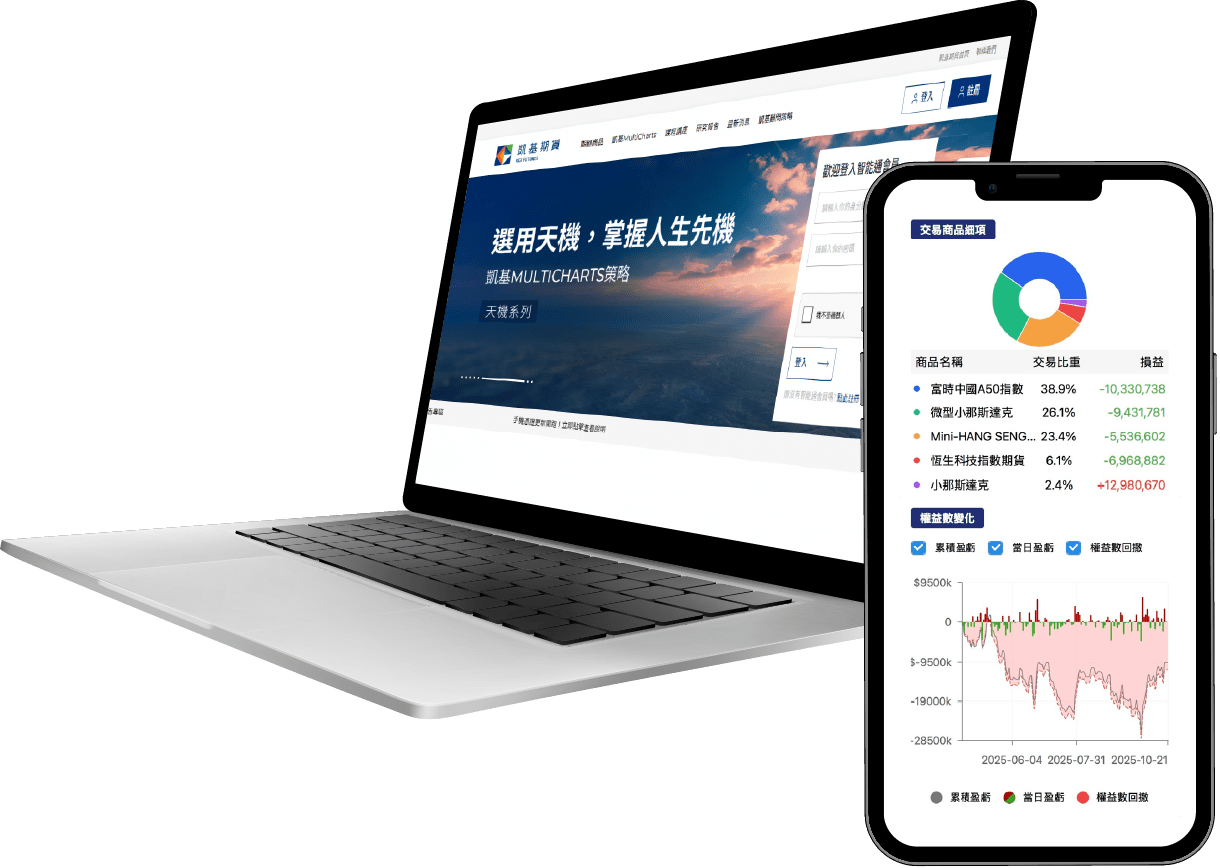 期貨及選擇權交易具低保證金之高度財務槓桿特性,可能產生極大利潤的同時也可能產生極大損失,交易人於開戶及交易前請慎重考量自身財務能力及經濟狀況並特別留意控管風險。網路系統下單有一定風險,資料內容因錯誤、延遲、或更新傳輸中斷,導致交易損失交易人應自行負擔。使用電子下單交易委託買賣,仍可能面臨斷線、斷電、網路壅塞等阻礙,致使委託買賣無法傳送、接收或時間延遲,請交易人自行評估。期貨商得受託從事期貨交易之交易所與商品,相關資訊請以主管機關公告為限。
