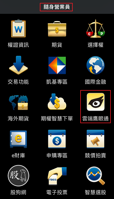 二、在隨身營業員系統中,可從主畫面點選『鷹眼通』後,進行監控查詢。