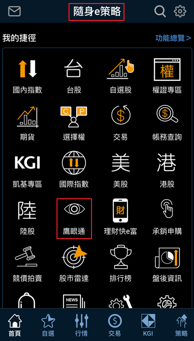 一、在隨身e策略系統中,可從主畫面點選『鷹眼通』後,進行監控查詢。