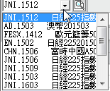 (1) 下拉箭頭鈕可瀏覽已開啟過的外國期貨商品、重新選擇 外國期貨商品。