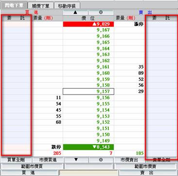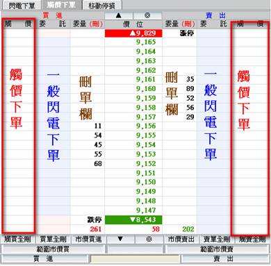 (4)     觸價單請在觸價欄點擊下單,委託欄唯一般閃電下單,刪單請在委量欄點選