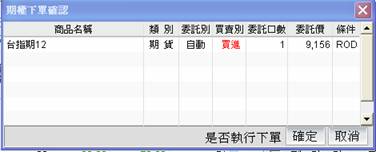 ▲下單確認視窗