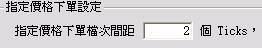 (3)     當下單方式選擇指定價格送出(限價委託) ,此時可設定指定價格下單,輸入”0”Ticks及使用所設定觸發價個委託,若設定”2”Ticks則是Better 2檔掛價委託,例如 觸發價為買進9200 設定”2”Ticks 則委託價會是9202限價買進