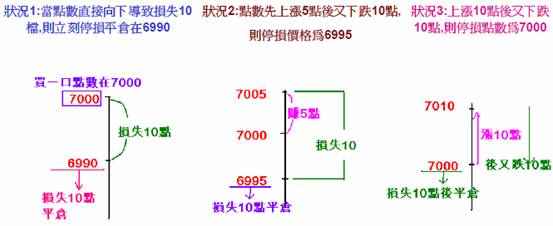 舉例: 買進一口7000 停損TICK10 Ticks