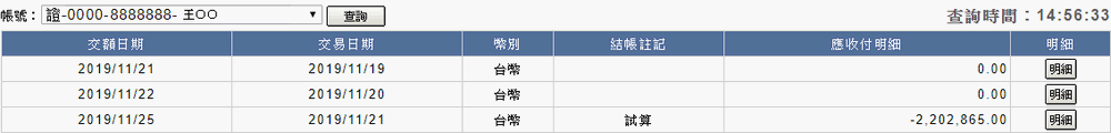 交割金額查詢