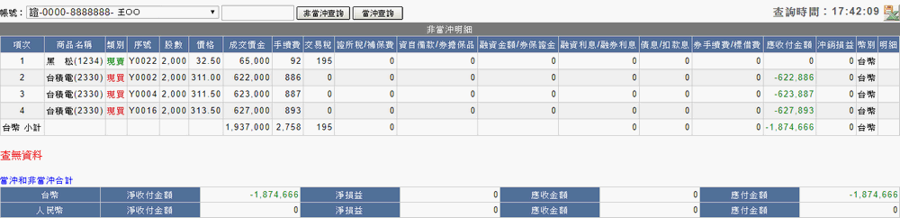 點選系統的〔證券帳務〕按鈕,再點選〔應收付試算(明細)〕標籤。
