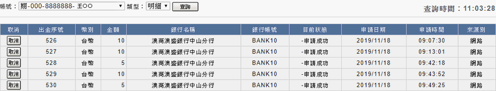 )按鈕,取消該筆出金申請。