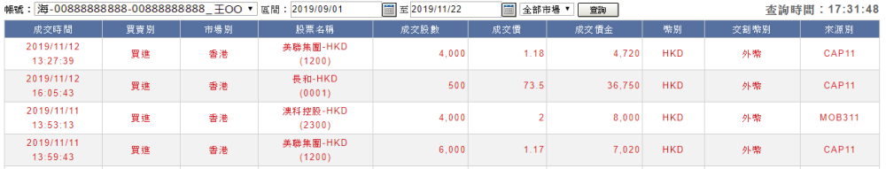 )由下拉式選單選擇查詢「全部 市場」、「香港」 、「美國」、「滬深通」 、「日本」等下拉式選單。