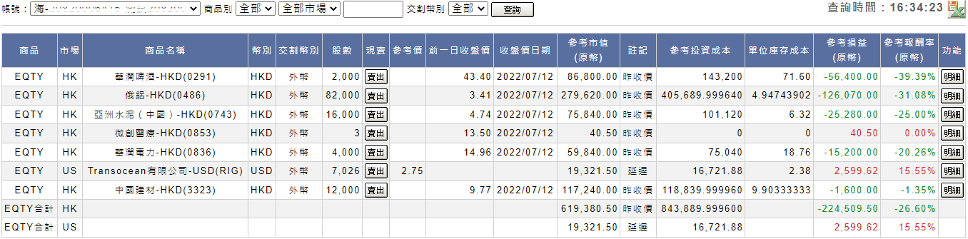 點選系統的〔完整下單〕按鈕,再點選〔海外股票〕標籤,再點選〔庫存查詢〕標籤。