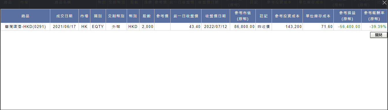 點選系統的〔複委託帳務〕按鈕,再點選〔庫存查詢〕標籤。